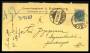 1895. Tofarvet, 4 Øre, grå/blå på returbrev sendt lokalt i København til Dagmartheatret. Portneren på teatret har skrevet: "Findes ikke. 31.1.1896", og brevet er returneret.
