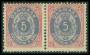 1875. 5 øre blå/rød i par med variant: Uden knop på 5-tal.