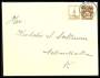 REKLAME. Galle & Jessen (røde bogstaver) & 5 Øre, grøn samt Korstegning & 10 Øre, brun. Brev sendt fra KØBENHAVN 10.6.33 til Randers.