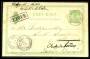 LAPIDARSTEMPLER. Helsagsbrevkort sendt fra Nykøbing til Skanderborg. Annulleret med bureaustempel SKIVE-GLYNGØRE 30.8.(1894). Ankomststemplet SKANDERBORG 30.8. Omadresseret til Aarhus inden det return...