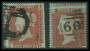 1855-57. 2 d. blå pl. 5 pg 6 i par, begge med minus hjørne. SG. (34-35) (løse) 280 £