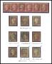 1841-58. 1 d. rød. 2 sider med diverse bla. flot 6-stribe.