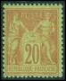 1876. 20 c. rødbrun, gullig. AFA 5000,-