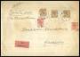 1913. Christian X, 10 Øre, rød (3-stribe), 5 Øre grøn på rekommanderet censurbrev fra København B, 18.8.1915 til Helsingfors. Stemplet Kassebrev / Københavns Banegaard.