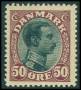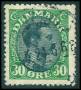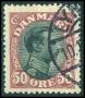 1918. 30 øre grøn/sort med variant: Hak foroven i medaljon.