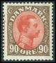1920. 90 øre brun/rød med stor spies i venstre margin.