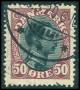 1918. 50 øre vinrød/sort med variant: Streg på krave.
