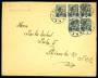 1922. 8/12 øre oliven i 5-blok på brev fra Sæby til Prag.