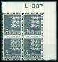 1960. 30 øre rød i 4-blok, med variant: streg til venstre for udkaster, pos. 23.