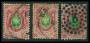 1859. 30 k. rosa/grøn. 3 stk. alle med fejl. AFA 6000,-