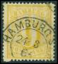 HAMBURG. 1864. 9 sch. gul, kort tak og uden stp. garanti. AFA 20000,-