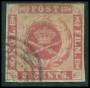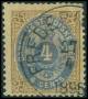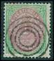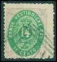 1873. 1 c. grøn/lilla med 4-ring stp.