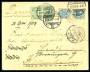1873. Tofarvet, 3 Cents, 7. Tryk. Opfrankeret på helsagskonvolut, 2 Cents, blå. Sendt fra ST.THOMAS 23.12.1895 til Kiel i Tyskland. Brevet er underfrankeret med 5 Cents, men er ikke blevet sat i straf...