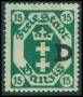1921. Tjenestefrimærke, 15 Pfennig, grøn. Manglende M i forskudt overtryk. Signeret GRUBER BPP.