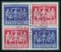 ZONER. 1947. Fredsdue, 1-5 Mark, de 4 højværdier. Opklæbet og afstemplet FRANKFURT 20.6.48.