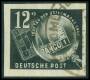 1948. 16 pf. blågrøn med variant: Højre øje eksploderet. Mi. (218II) 100 €