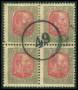 1902. 4 aur grå/rosa i 4-blok med nr. stp. 49.