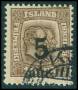 1925. 50 aur/ 5 kr. brun/gråblå med lavt og uldent overtryk.