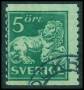 1920. 5 øre grøn type 1 med vm. linier og bogstaver. Facit (140Acxz)
