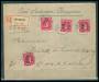 1891. 10 øre rød x 4 på R-brev stp. ED 18.5.91.