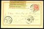 1927. FACSIMILE Adressekort for en pakke med Postopkrævning 290,90 kr. sendt fra København 1, 11.4.1927 via Sverige til Helsingfors. Vægt 7,7 kg. Vi har ikke set et sådan adressekort tidligere. Rødt s...