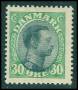1918. 30 øre grøn/sort med forskudt midterstykke.