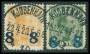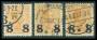 1921. 8/3 øre grå med stor del af overtryk 8 mangler.