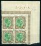 1918. 27/1 kr. blågrøn/rød i 50-blok. AFA 2500,-