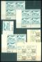 Planche med forskellige varianter i 4-blokke og enkeltmærker.