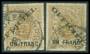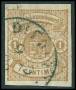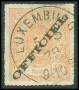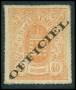 TJENESTE. 1875. Un franc/27½ c. gulbrun, normalt og fejl overtryk modsat retning. Sign.