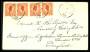 1906. 10 bit rød i par x 2 på brev til England, lodret fold til højre for mærker.