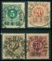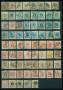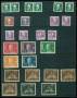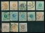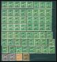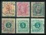 Planche med 6 mærker med blå, røde og grønne stempler, sjældent.