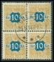 1907. 10 kr. gul/blå i 4-blok. AFA 1320,-