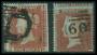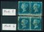 1855-57. 2 d. blå pl. 5 pg 6 i par, begge med minus hjørne. SG. (34-35) (løse) 280 £