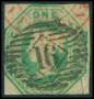 1847. 1 sh. grøn med lille indklip i nedre højre side uden for mærkebilledet. AFA 4500,-