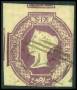 1855. 6 d. lilla med omv. vm. en kort tak i nø-hjørne. SG. (70wi) 400 £