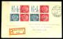 1938. Rekommanderet brev sendt fra BERLIN-FRIEDENAU 29.6.38 til New York, U.S.A. Fin 8-blok i sammentryk.