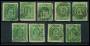 1871. 16 sk. grøn x 9 med fejl/defekter. AFA 19800,-