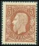 1869. 5 fr. mørkrødbrun. AFA 15000,-
