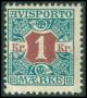 1907. 1 kr. blågrøn/rød med variant. AFA 900,-