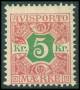 1907. 5 kr. rød/grøn med variant. AFA 2400,-
