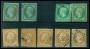 1953. Napoleon, 1 Centime, olivengrøn og 5 Centimes, grøn samt 10 Centimes, gulbrun. Indstikskort med 9 stemplede mærker.