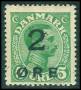 1875. 4 øre grå/blå i sammensat par med linie stp. Fra Færøerne.