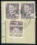 1950. 15 øre gråviolet i par og 10 øre brun på klip med udsl. stjerne stp. Myggenæs.