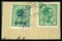 1919. 2/5 øre grøn og 5 øre grøn på klip stp. Thorshavn 21.1.19.
