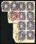 1942. 10 øre violet x 10 og 5 øre vinrød på talondel med udsl. stjerne stp. Fuglefjord.