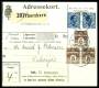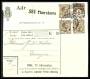 1923. 5 øre brun og 20 øre brun x 3 på adressekort.