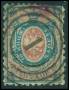 1860. 10 k. blå/rosa defekt.