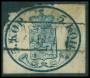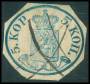 1856. 5 kop. blå stor perle beklippet. AFA 10000,-