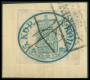 1856. 5 kop. blå stor perle dobbeltannulleret på klip. AFA 14000,-